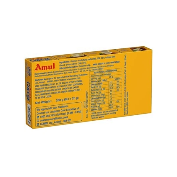 Add yummy double cheese burst to all your dishes with Amul Cheese Cubes and enjoy the mouth-watering burst of flavours. The cheese is rich in protein and vitamins making it a healthy ingredient in all the dishes. A simple omelette will also taste amazing with these cubes of Amul cheese. The cube form of cheese makes it easier to use in the pizzas, fondues and other exotic dishes. The cubic can be used in a thousand ways, from party platter to grating it into the soup. The cheese lover has many options to include cheese in their diet.