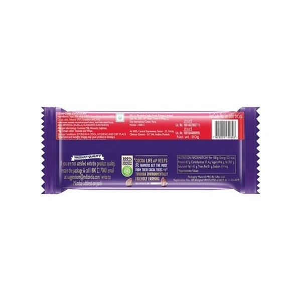 Cadbury Dairy Milk is all about regaling in the chocolate's richness and creaminess. The classic taste of Cadbury chocolates enriched with the real goodness of nuts and raisins offers you the reason to celebrate every small and big occasion of happiness.