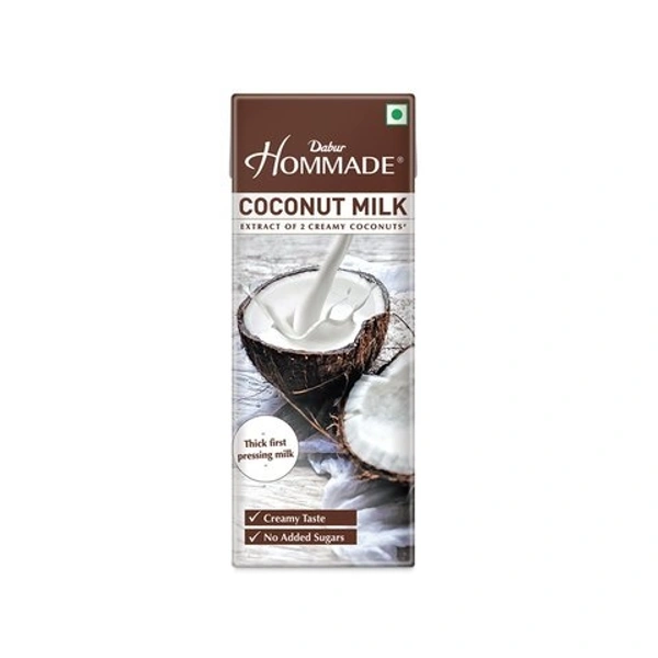Made from the first pressing extract of the best-grade coconuts available, Dabur Homemade Coconut milk has a rich flavour and thick feel that give your dishes a creamy texture. Made from the finest quality coconuts, it is sealed hygienically in a Tetra Pak pack and offers the complete goodness of Dabur Hommade quality and assurance. Each 200 ml pack of Dabur Hommade coconut milk contains extract of two creamy coconuts. An inspiration for seasoned cooks, experimental folks who like to try cooking and aspiring chefs-to-be.