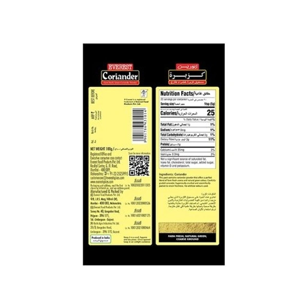 Everest Coriander Powder is a perfect blend of garden-fresh aroma and a natural green colour that thickens gravies and gives it an authentic taste. It widely used to give Indian curries a distinct flavour. It is used for thickening gravies and curries. Has a natural green colour and a fresh aroma that is reminiscent of a herb garden.
