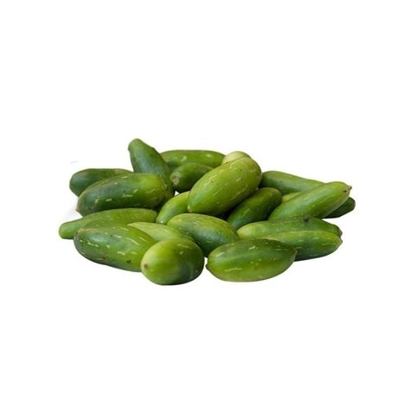 Ivy Gourd (Kundru), also known as Gherkin is an exotic vine. It is ellipsoid in shape and small with smooth skin along with variegations of green and white. The clear white flesh of the fruit with a similar taste to cucumber, has numerous seeds which creates a red color. The flesh is equally crispy as well as tasty in texture having a slightly bitter aftertaste.