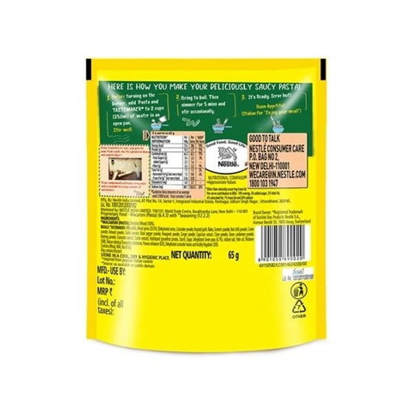 To prepare a bowl of lip-smacking pasta, add pasta and tastemaker to 2 cups of water in an open pan. Bring it to boil and its ready!
