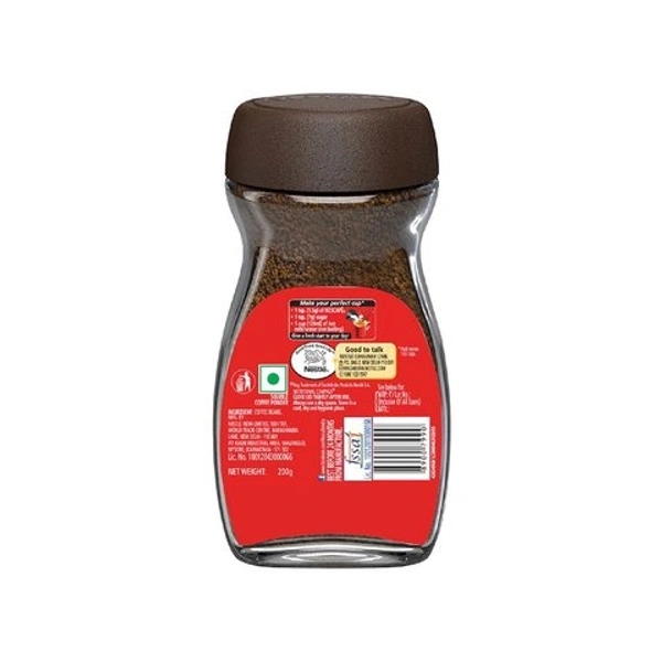 To take your coffee experiences to the next level, NESCAFE, the world's favourite instant coffee brand, brings forth a rich and aromatic coffee in the form of NESCAFE Classic. The unmistakable flavour of NESCAFE Classic is what makes this signature coffee so loved all over the world. Start your day right with the first sip of this classic 100% pure coffee and let the intense taste and wonderfully refreshing aroma of NESCAFE instant coffee awaken your senses to new opportunities. With over 75 years of experience and working with coffee farmers, to help them grow more sustainable coffee through improved crop techniques, we deliver the best coffee produced by the best selecting, roasting and blending methods. Usage: Simply follow the instructions on the back of the pack and mix the coffee powder with hot water or milk to get your own cup of premium instant coffee right at home. Storage Recommendation: On opening, transfer the contents of the pack into an airtight container. Always use a dry spoon.