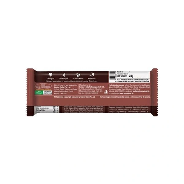 Max Protein Choco Fudge is an undeniably delicious bar made with select nuts like almonds and cashews and a rich base of chocolate. It is rich in electrolytes to keep you recharged all day. This 100% vegetarian bar consists of 21 vital Vitamins & Minerals, Electrolytes, Omega 3, Amino Acid (L-Glutamine), which makes it wholesome. It is an on-the-go bar that helps you save time, while you get other things done in your busy life. It has high protein (20gm) and fiber (5gm) to keep you energized, so you stop at nothing. It's prebiotic in nature and even helps you keep your hunger in check for 3 hours.